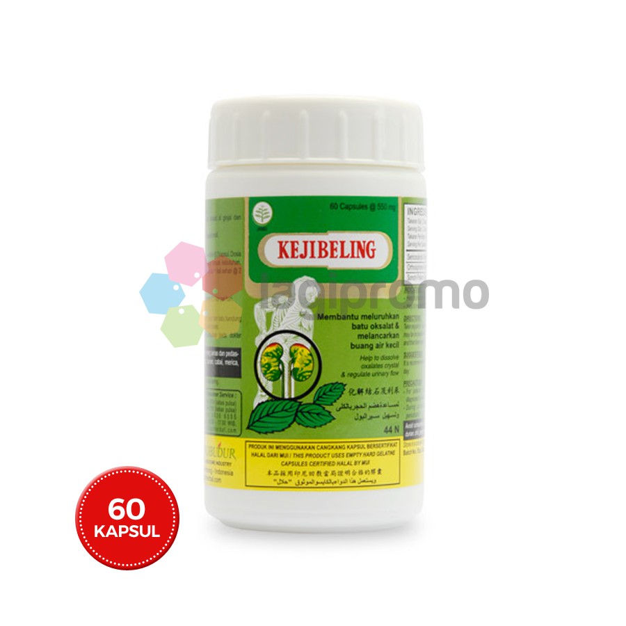Borobudur Herbal Keji Beling 60 Kapsul Obat Batu Ginjal sudah terdaftar BPOM dengan Nomor Registrasi POM TR 082381761Produk baru dan asli dari produsenManfaat:Membantu meluruhkan batu oksalat di ginjal dan kandung kemihMembantu mengatasi sakit pinggang yang disebabkan batu ginjalMelancarkan buang air kecil (diuretik)Membantu membersihkan saluran kemihKomposisi:Sericocalycis Folium (Kejibeling)Orthosiphonis Folium (Kumis kucing)Sonchi Folium (Tempuyung)Aturan Minum:Diminum 2x sehari @ 2 kapsulDosis dapat ditingkatkan atau dikurangi sesuai kebutuhan. Jika kondisi membaik selanjutnya minumlah secara teratur 1x sehari @ 2 kapsulDianjurkan minum air putih minimal 2.5 liter per hariHanya untuk penderita batu ginjal dan batu kandung kemih yang telah ditetapkan dokterSelama penggunaan konsultasikan pada dokter secara berkalaTersedia ukuran lain:Keji Beling Strip 100 KapsulKeji Beling 100 KapsulKeji Beling 10