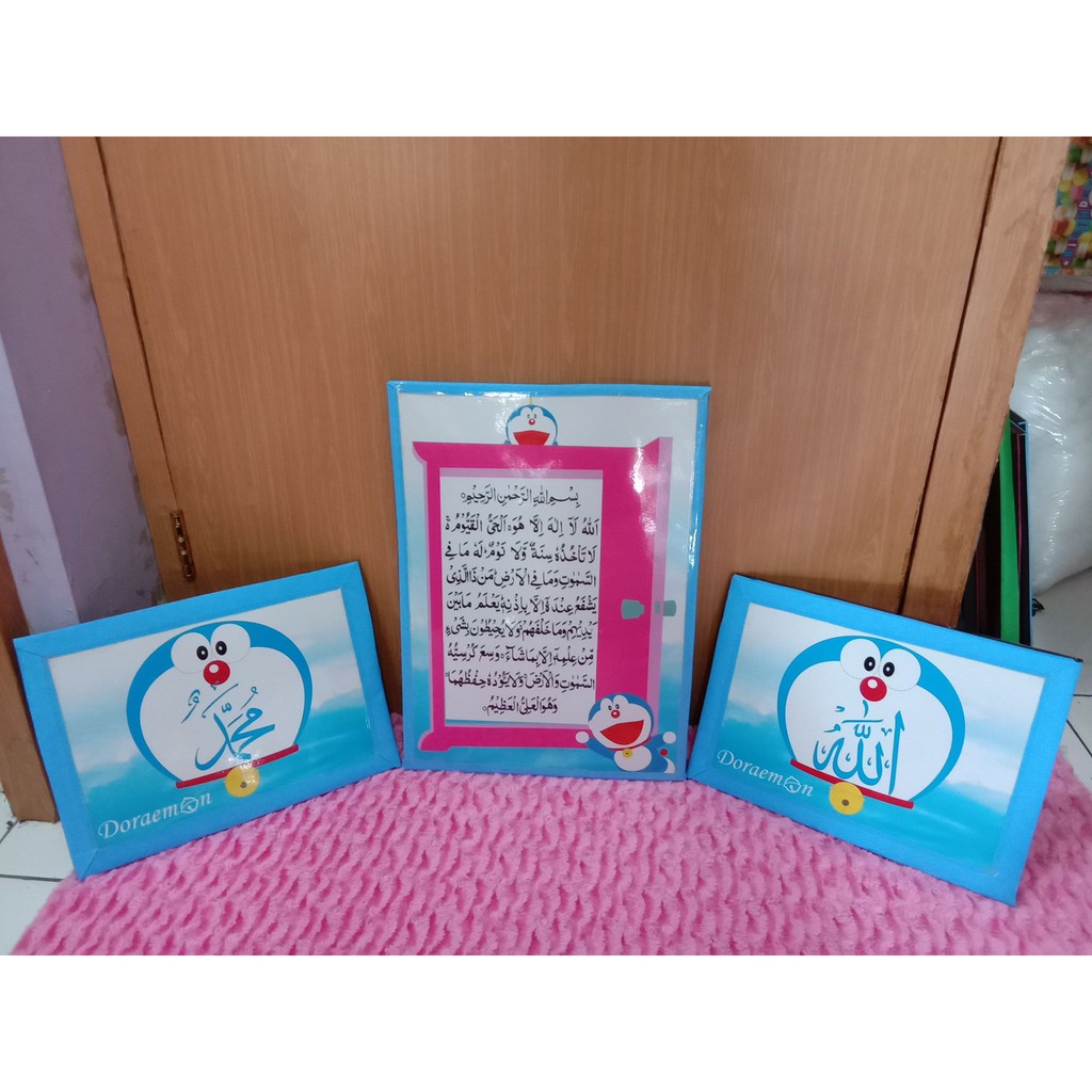 ukuran lafadz 31 cm x 24 cmukuran ayat kursi 45 cm x 32,5 cmbahan sterefoam, karton (buat belakang saja), laminasiada perekat, tinggal tempel#kaligrafidoraemon #shincollectionpurwo