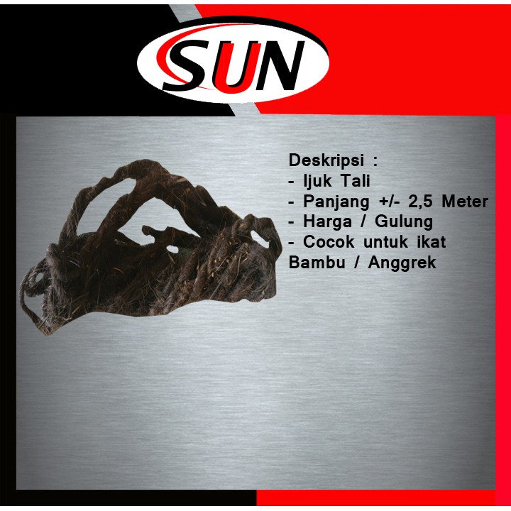 Deskripsi :- Tali ijuk- Panjang +/- 2,5 meter- Harga / ikat- Cocok untuk mengikat bambu anggrek dan lain lain------------------------------------------------------------------------------------------------------Salam,Sun har