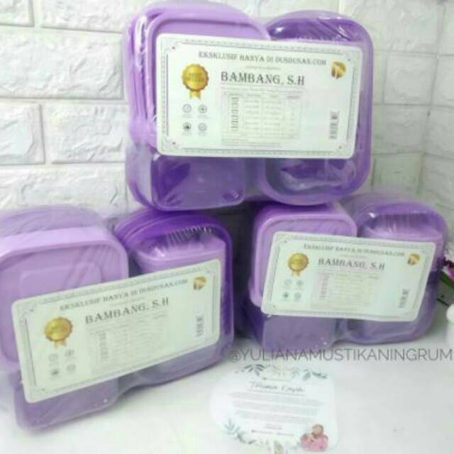 Bambang Set Isi Lebih Banyakkkk!!!!1 set isi 22 pcsSatu lagi storage multifungsi buat Anda yang sedang cari wadah atau tempat penyimpanan.Paket lengkap banget deh, sudah komplit, multifungsi, berkualitas... Harganya sangat2 terjangkau!! Mau simpan bahan makanan di kulkas? Mau simpan makanan kering di lemari dapur Anda? Mau simpan aksesoris atau alat tulis? Semua bisa lohh!! *1 set Bambang S.H isi 22 Pcs*:2 pcs kapasitas 1.400 ml2 pcs kapasitas 1.000 ml3 pcs kapasitas 850 ml3 pcs kapasitas 700 ml5 pcs kapasitas 450 ml7 pcs kapasitas 270 mlSaatnya bawa pulang Bambang S.H. sebelum nyesel dan jadi milik orang lain!Keunggulan Produk: :- BPA Free- PP5 dan Food Grade, aman untuk makanan- Aman dimasukkan ke Freezer- Aman dimasukkan ke mesin pencuci piring- Aman dimasukkan ke microwave- Stackable, mudah ditumpuk saat tidak digunakan#foodprep #foodpreparation #foodbox #foodcontainer #foodkeeperset #wadah #wadahpenyimpanan #bambang #bamba