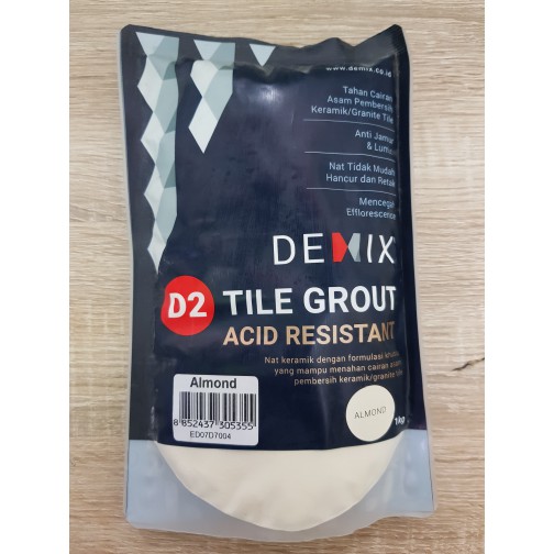 DEMIX D2 TILE GROUT ACID RESISTANT Tersedia 4 warna : Ivory,grey,vannila,dark blackBahan pengisi nat keramik / granite tile / mosaik / marmer dan batu alam lainnya dengan formulasi khusus ACID RESISTANT*, yang mampu menahan cairan asam pembersih keramik / granite tile, sehingga menjadikan nat tidak mudah hancur dan retak, terdiri dari campuran semen, polimer, pigment dan bahan aditif yang tercampur secara merata dengan berbagai macam pilihan warna.*Tahan cairan asam pembersih keramik/granite TILE*Anti jamur& lumut*Nat tidak mudah hancur dan retak*Mencegah effloresecence*Ideal untuk aplikasi dengan lebar Nat keramik/granite TILE sampai dengan 5mm*Tingkat keasaman Acid Resistant : HCL m