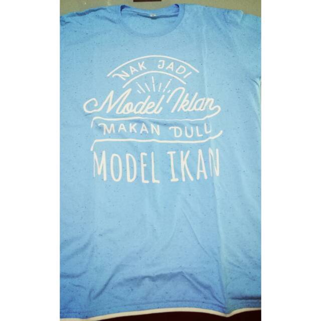 TS ini banyak penggemarnya, warna yg menarik dan desain yang unik lucu : Nak Jadi Model Iklan, Makan dulu Model Ikan. Yg artinya Mau Jadi Model Iklan, Makan dulu Model Ikan. Bahannya juga keren loch, katun Misty, yg soft dan biasa dipakai oleh brand terkenal.Ukuran :Ukuran kaos : M 50 x 70L 52 x 72XL 54x74XXL