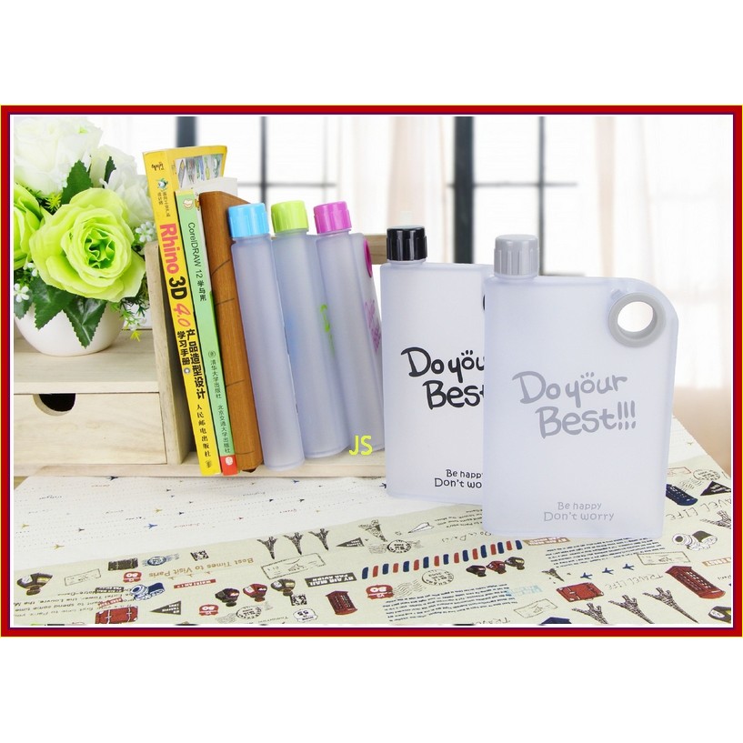 New Memo Bottle Do Your Best Doff / Botol Minum Plastik MemoBottle 380mlREADY :greyunguhijaubirublackketerangan invoice kosong= kirim random ,keterangan invoice tidak sesesuai stock yg tersedia= kirim random ,no complain ,thanks Botol minum Memobottle ini memiliki bentuk kotak rata sehingga mudah dimasukkan kedalam tas. Selain itu botol minum ini juga memiliki sebuah lubang kecil yang dapat Anda gunakan untuk menaruh tali sehingga dapat digantung dibelakang tas Anda. Botol ini dapat menampung 380ml air. Botol minum ini menggunakan bahan plastik berkualitas dan juga aman tidak mengandung zat kimia berbahaya.NON GARANSI BARANG KAMI KIRIM APA ADANYA SESUAI PRODUKSI PABRIK. TIDAK MENERIMA PENUKARAN DENGAN ALASAN APAPUN.Happy shopping