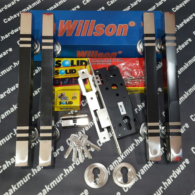 TARIKAN PINTU / PEGANGAN PINTU / HANDLE PINTU SETPH. KOTAK LIS 2 CAT KAKI PIPOType : TP-3060FUkuran : 25 x 25 x 33 cmWarna : Chroom DoffBahan : SteinlessSatuan : SetHandle Pintu RumahUntuk Pintu 2 daunKelengkapan : 1. Pull Handle-Tipe : TP 3060F-Panjang : 33cm-Varian : Natural, Mahoni, Hitam-Merk : Willson 2. Bodi Kunci atau Mortise Lock-Tipe : LC 112 WL 40mm -Ukuran : 40mm (jarak dari plat depan ke lubang kunci)-Material : Steinless Steel 3. Cylinder atau Anak kunci-Tipe : DC 02-60mm-Panjang : 60mm / 6 cm-Material : Kuningan 4. Ring Kunci atau Penutup Lubang kunci-Tipe : RK 3002D CD-Material : KuninganBiasa di pakai untuk pintu double / pintu yg memiliki 2 daun, namun tetap bisa di gunakan untuk pintu single / satu daun ..NB :- Melayani grosir / ecer, dan harga yg kami tawarkan cukup terjangkau- Untuk pembelian di atas quantity grosir dapat menghubungi langsung - Setiap foto produk yg kami foto adalah hasil jepretan kamera sendiri- Barang yang dikirim sudah kami cek terlebih dahuluTerima Kas